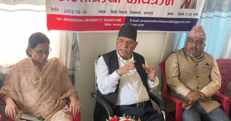 नेकपा माओवादी केन्द्रका अध्यक्ष पुष्पकमल दाहालले माओवादीले अहिले प्रतिनिधिसभामा प्रतिपक्षको भूमिकामा भए पनि सत्ता पक्षको जस्तो भूमिका निर्वाह गर्नुपर्ने बाध्यतामा आइलागेको बताएका छन्। मंगलबार बिहान चितवनस्थित निजी निवासमा सञ्चारकर्मीहरूसँग कुराकानी गर्दै उनले यस्तो बाध्यता संविधान र ऐन कानुनका कारण आइपरेको बताए।