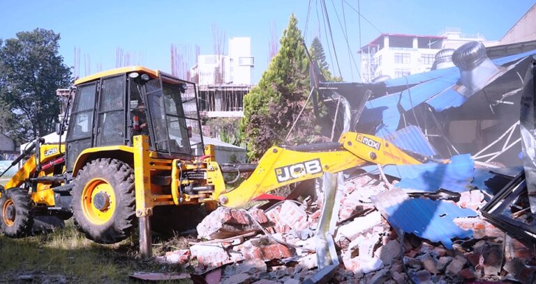पूर्व मन्त्री खड्काको लैनचौर स्थित बैंक्वयटमा चल्यो महानगरको डोजर