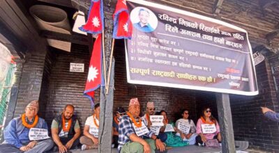 राप्रपाका वरिष्ठ उपाध्यक्ष रविन्द्र मिश्रलगायतका नेताको रिहाइको माग गर्दै लतितपुरको जावलाखेलमा रिले अनशन सुरु भएको