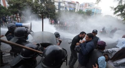 शिक्षक आन्दोलन अशान्त, निषेधित क्षेत्र तोड्न खोजेपछि प्रहरीले हान्यो पानीको फोहोरा